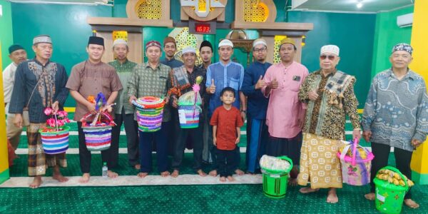 Ketua PKM Masjid Nurul Mujahidin Pasar Wamanggu Merauke, H Ali Syahbana, SE, M.Si pose bersama jama’ah usai barzanji maulid Nabi Muhammad SAW 1446 Hijriah, Minggu (15/9/2024) sore. PS/HIDAYATILLAH